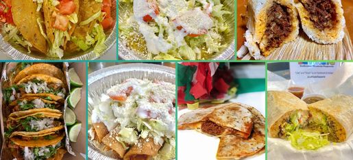 - (2) Fried Chicken Pepper Tacos with Cheese. Served with Rice and Beans